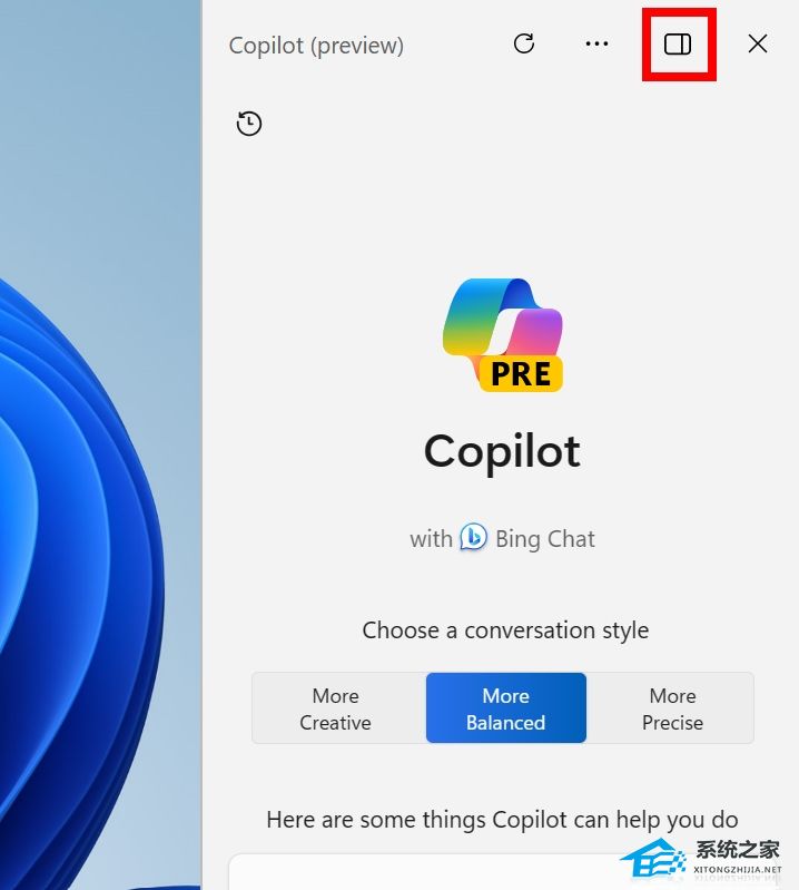单击标题右上角的新图标可取消固定 Copilot 面板,以取消停靠 Copilot。