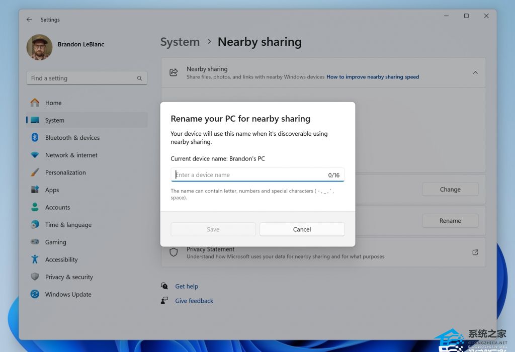 为您的设备指定一个更友好的名称,以识别与附近共享的共享。