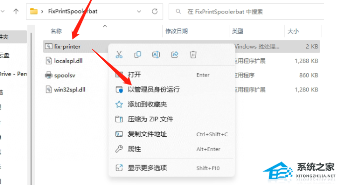 第二步:打开刚才解压的文件,以管理员身份运行里面的 fix-printer.bat 。