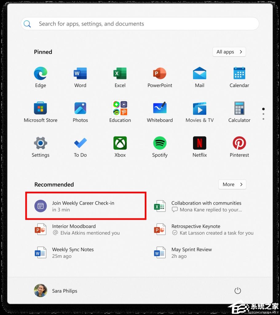 对于使用 Microsoft Entra ID 帐户登录 Windows 11 专业版或企业版的用户,我们正在尝试直接从“开始”菜单查看和加入即将举行的 Microsoft Teams 会议的功能。下一次在线 Teams 会议将在开始前 5 分钟显示为推荐项目,单击会议推荐将在 Teams 中打开加入会议流程。