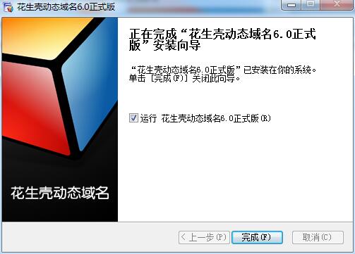 5、安装成功,勾选“运行花生壳动态域名6.0正式版”,点击完成即可开始使用了。