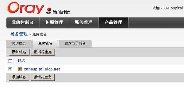 2、登陆花生壳官方网站,进入我的控制台,点击域名管理,看到免费域名。