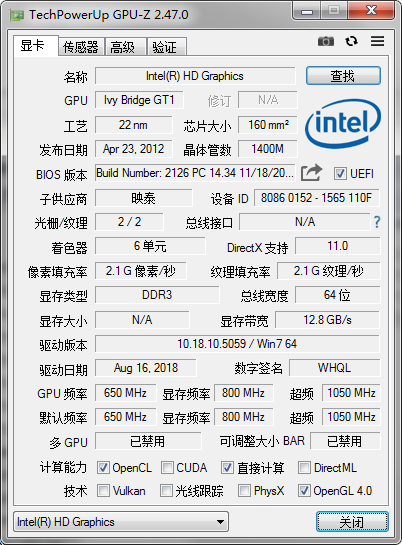 1. 打开gpu-z软件以后可以直接看到显卡的各项详细参数;