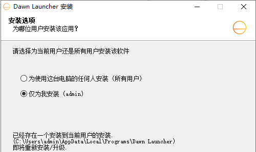 1. 将Dawn Launcher直接安装到电脑,点击下一步。