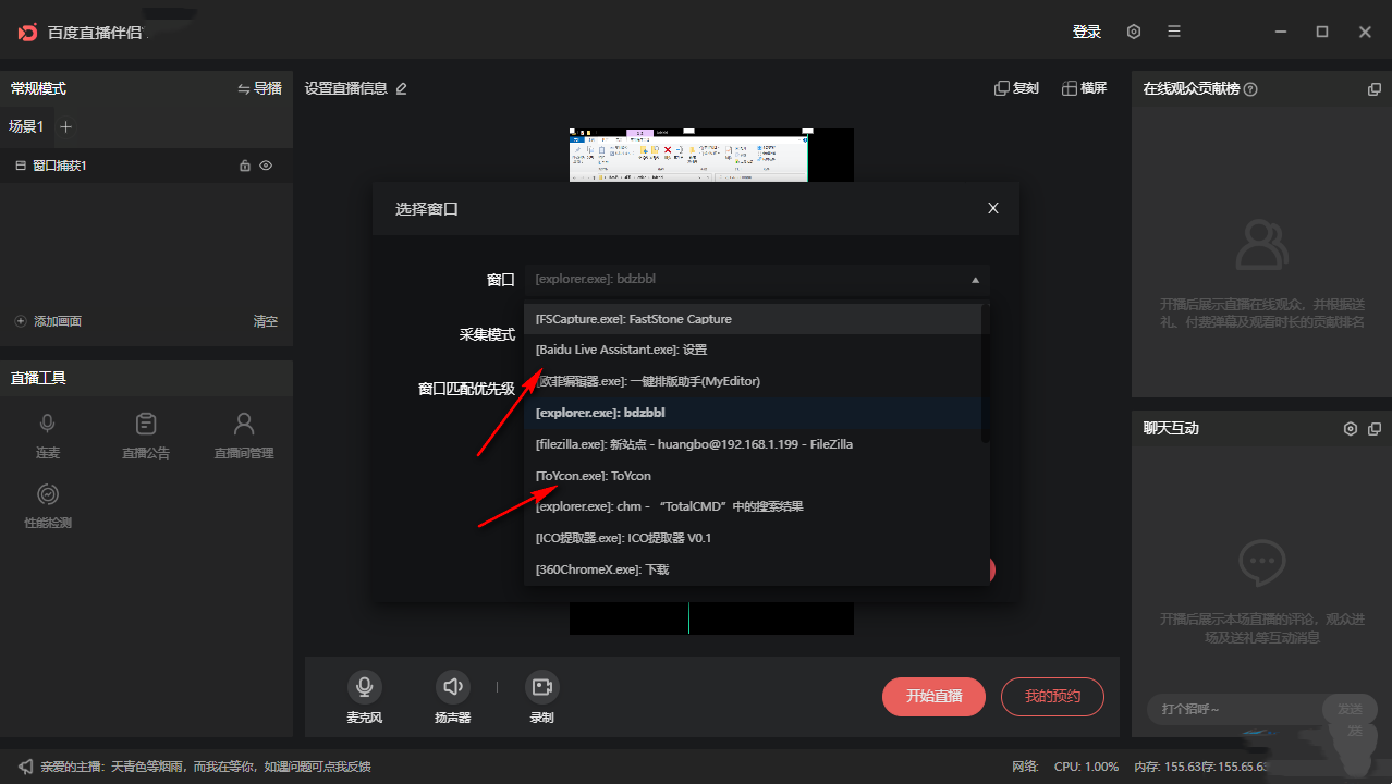 5. 鼠标点击一个桌面打开的窗口添加到直播间,以后就可以对该窗口直播。
