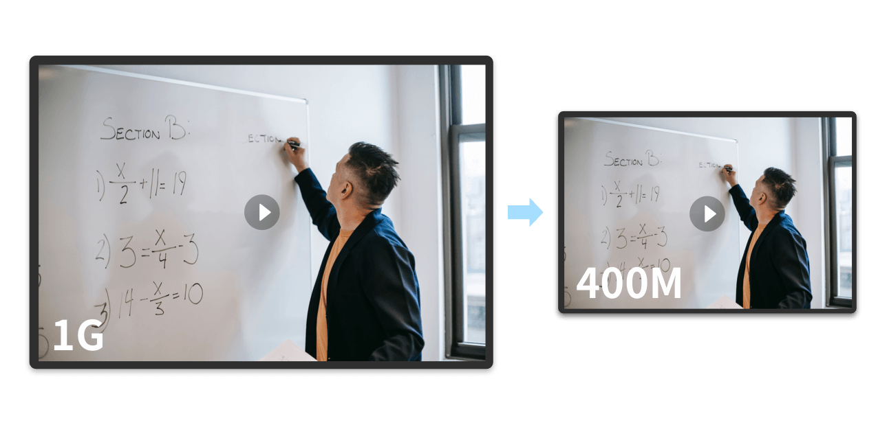 在不损坏已有画质的前提下可将视频体积压缩到原始的60%——20%甚至更低。