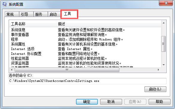 2. 选择”工具”选项卡,向下滚动找到”关闭 UAC” ,选中该行。