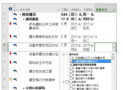 已打开Project文件的设备,文件中显示计划功能。