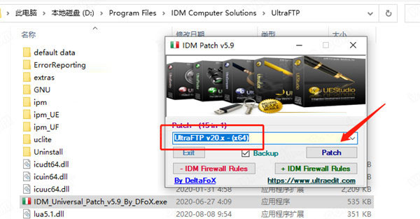 5、先不要运行IDM UltraFTP,将注册机复制到软件安装目录下以管理员身份运行,选择对应的版本然后点击Patch即可。