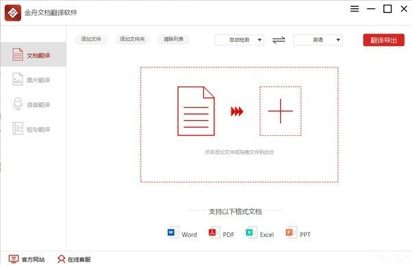 金舟文档翻译软件是一款多功能的文件翻译器,体积小巧,功能强大,可以支持文档翻译(txt、word、ppt、excel、pdf)、图片翻译(jpg、jpeg、bmp、png)、语音翻译(amr、wav、mp3、m4a)、短语翻译等等,且软件操作简单,易上手。