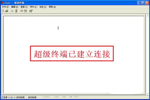 在上一视图中各项参数设置完毕后单击“确定”进入本次超级终端连接的命令行操作视窗,表示超级终端连接已经建立,视图如下。