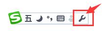 第二步:点击那个小扳手的形状进入五笔设置。如下图所示,点击打开搜狗工具箱,找到“属性设置”选项,点击打开。