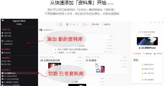 6、可以通过TagLyst Next建立资料库,可以设置文件库。
