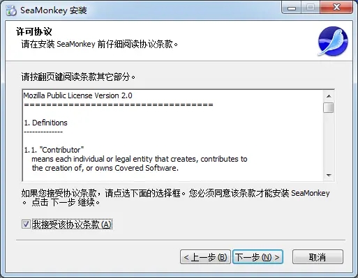 1、到本站下载安装SeaMonkey,打开安装程序,点击下一步继续安装。