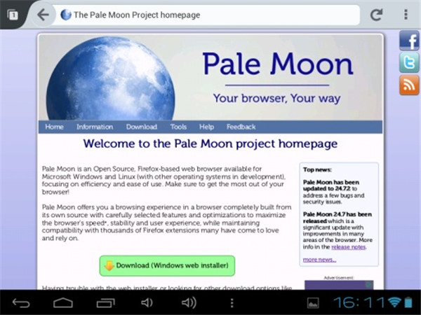 特别的是,Pale Moon可以与firefox完全一样地使用firefox的扩展、插件等资源,firefox可以使用的延伸资源,Pale Moon 都可以使用。