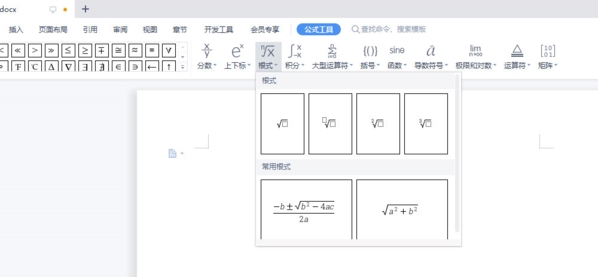 4、点击不同的运算符号有几种类型可以选择,比如这个根号。