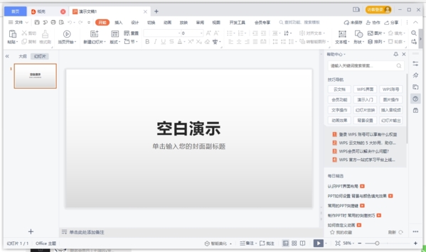 4、我们选择空白文档,完成PPT的创建后,就可以开始制作PPT了。