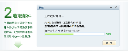 “超高速”—— 使用网易自主研发的专有邮件协议访问网易旗下所有邮箱,收发邮件速度比同类软件快30%,支持断点续传,高效专业。