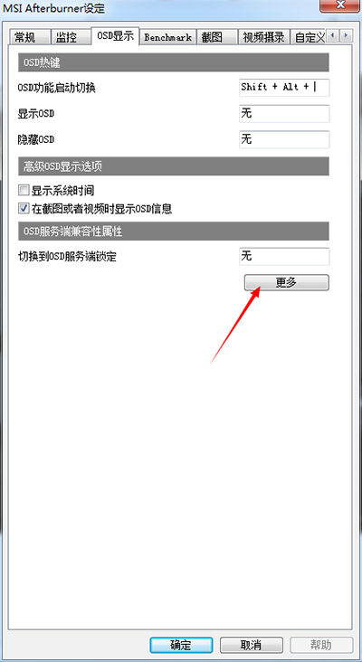 3、如果要调整显示字体类型、颜色、显示位置等,点击OSD显示,选择更多。
