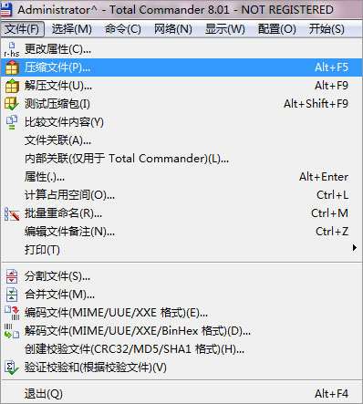 压缩文件时用右键单击要压缩的文件,在“复制”命令的下方可以看到“文件压缩”命令(快捷键Alt + F5)。