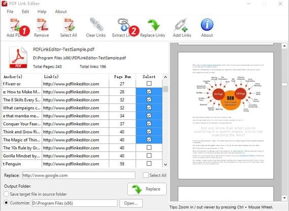 1、添加一个PDF文件。 PDF链接编辑器将显示所有超链接。 您还可以在右侧面板中预览添加的项目。