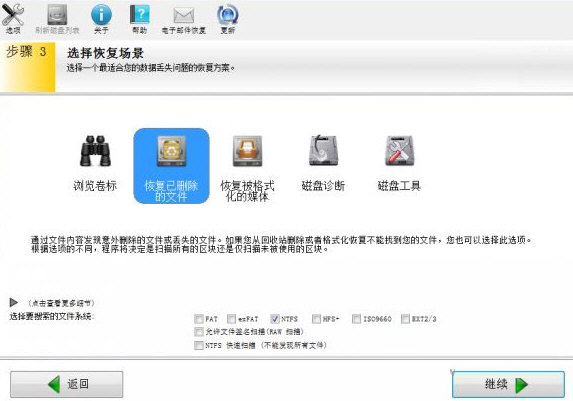 选择文件的恢复场景,文件属于误删情况,选择恢复已删除的文件即可。