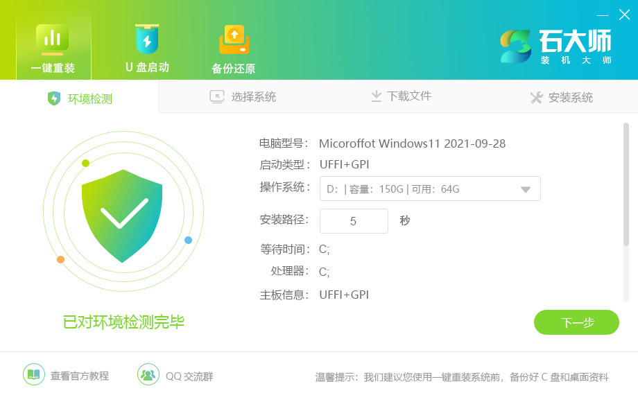 石大师装机大师一款适合新手一键重装电脑的工具,软件小巧免安装,人人都能自己动手重装系统,轻松完成xp、win7、win10、win11的重装。软件绿色小巧,无需U盘,点击鼠标即可完成整个重装流程。有需要的欢迎来下载。