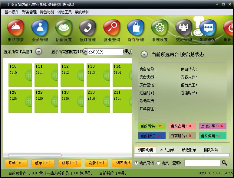(5) 转台:将当前餐台中的指定菜品转送到其它餐台;