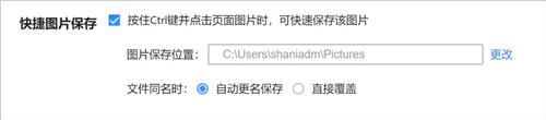 在“基础设置”部分,勾选快捷图片保存后,可通过“Ctrl+点击图片”,迅速将图片保存到默认文件夹中。